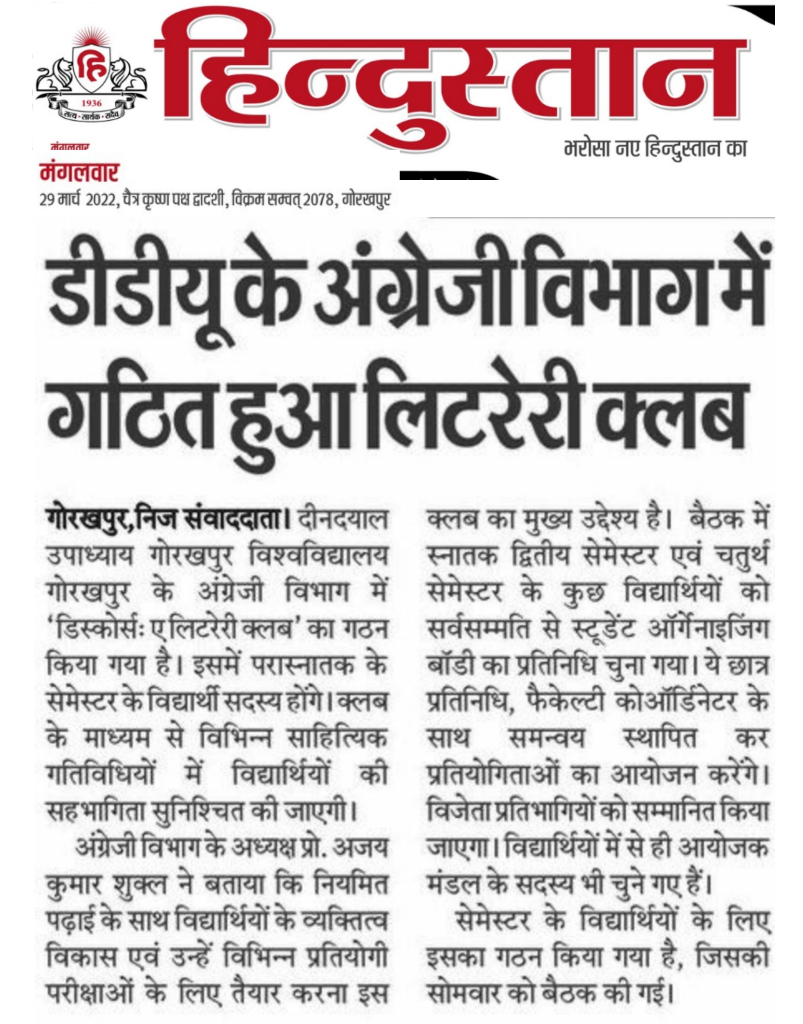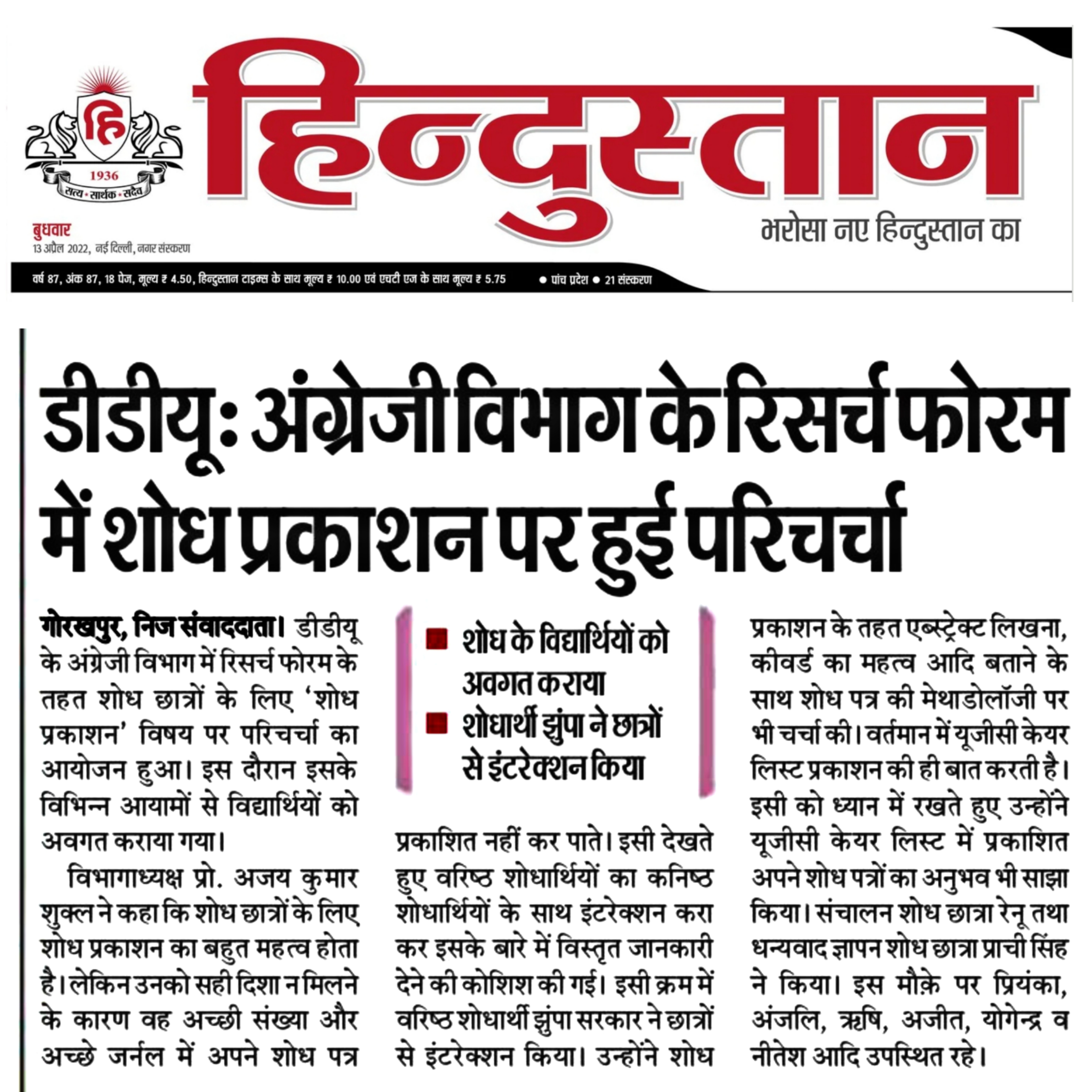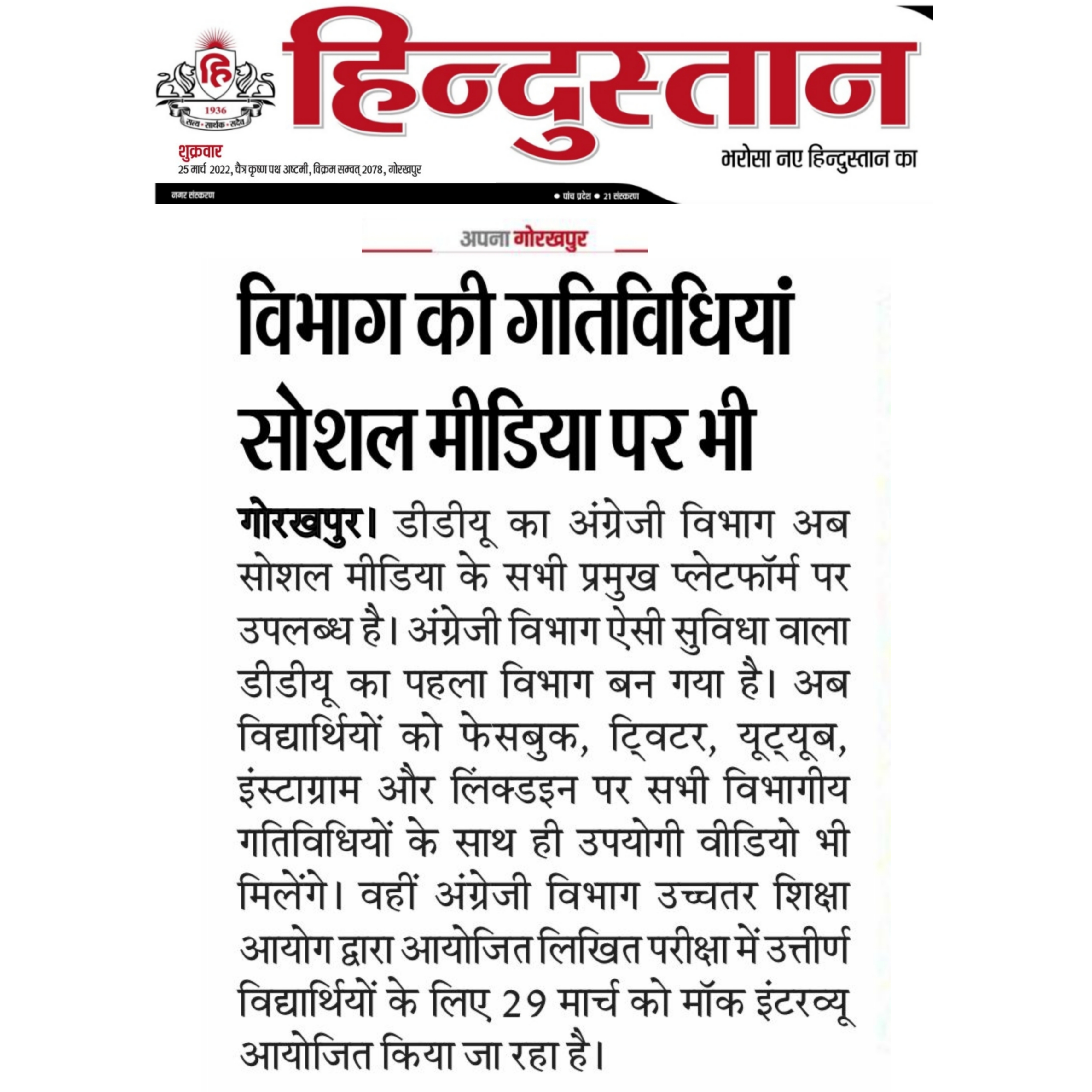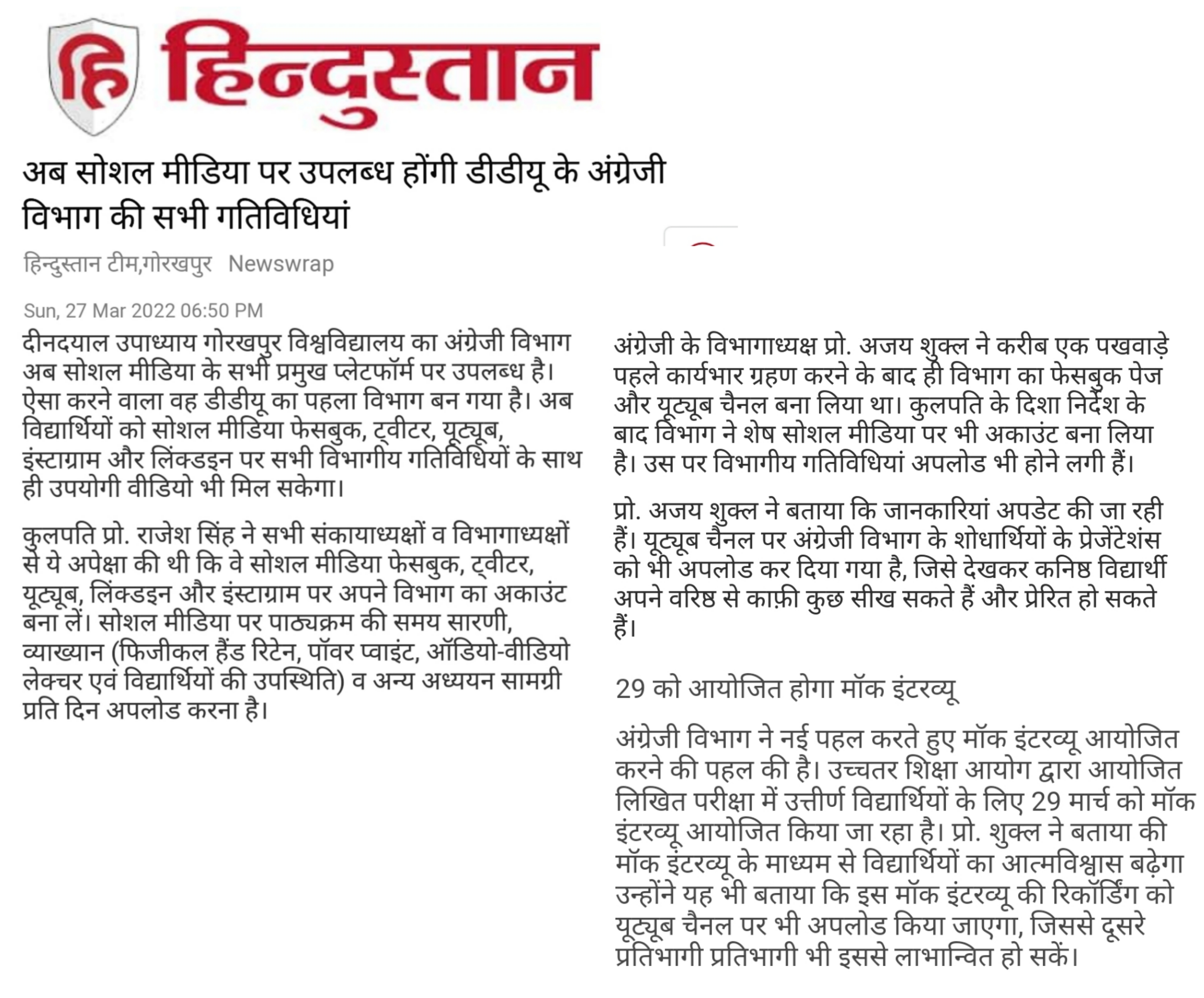 Department of Hindi, Modern Indian Languages & Journalism