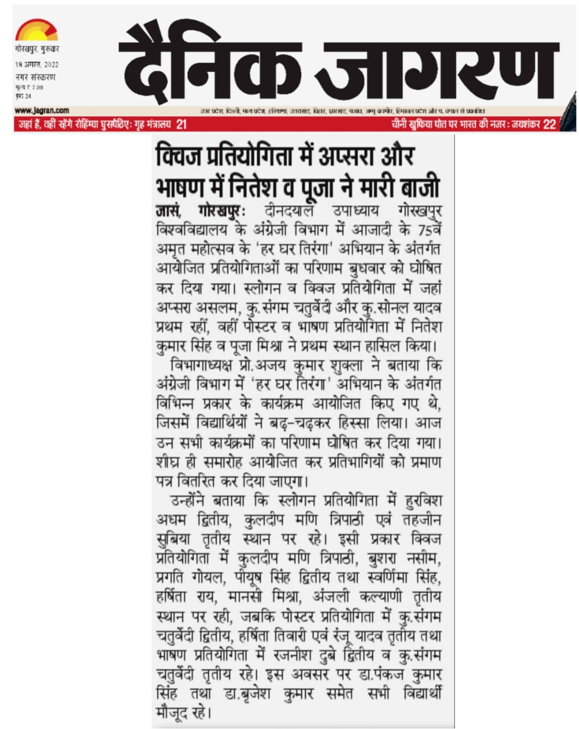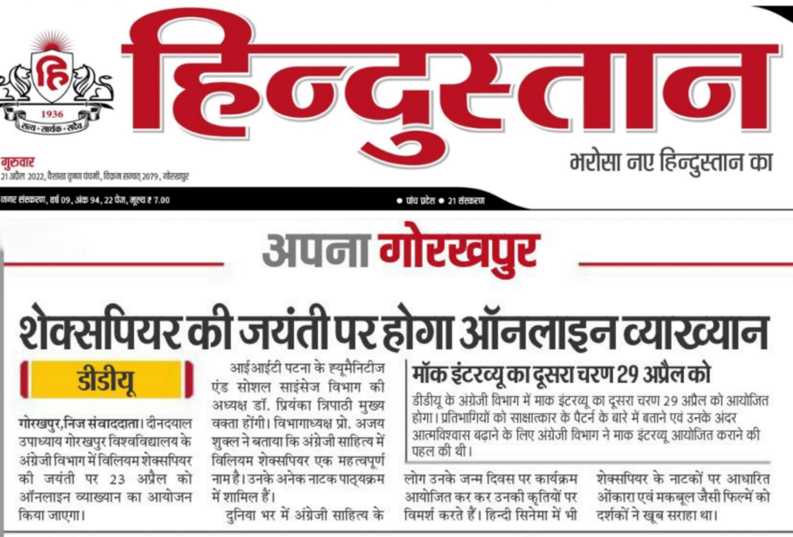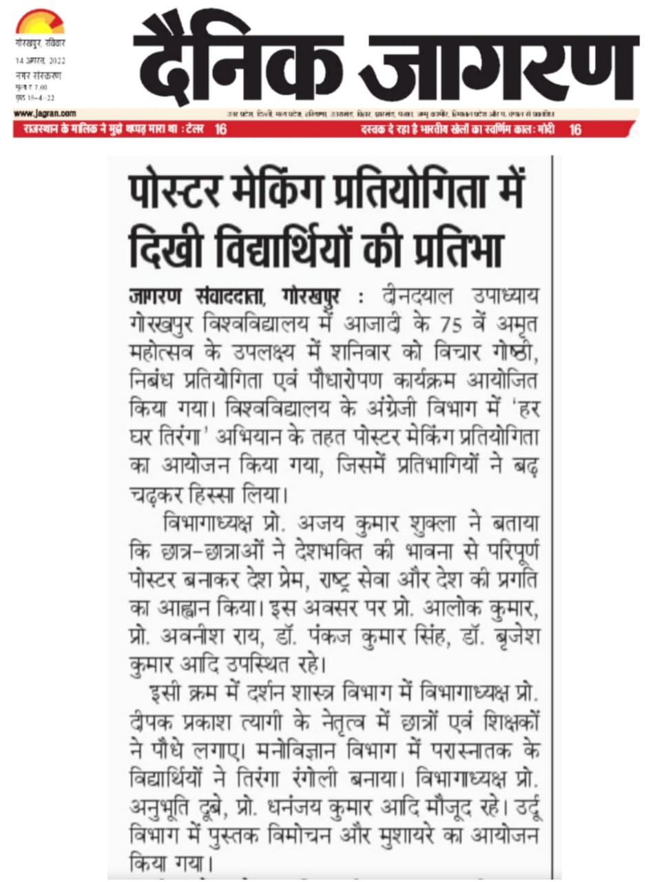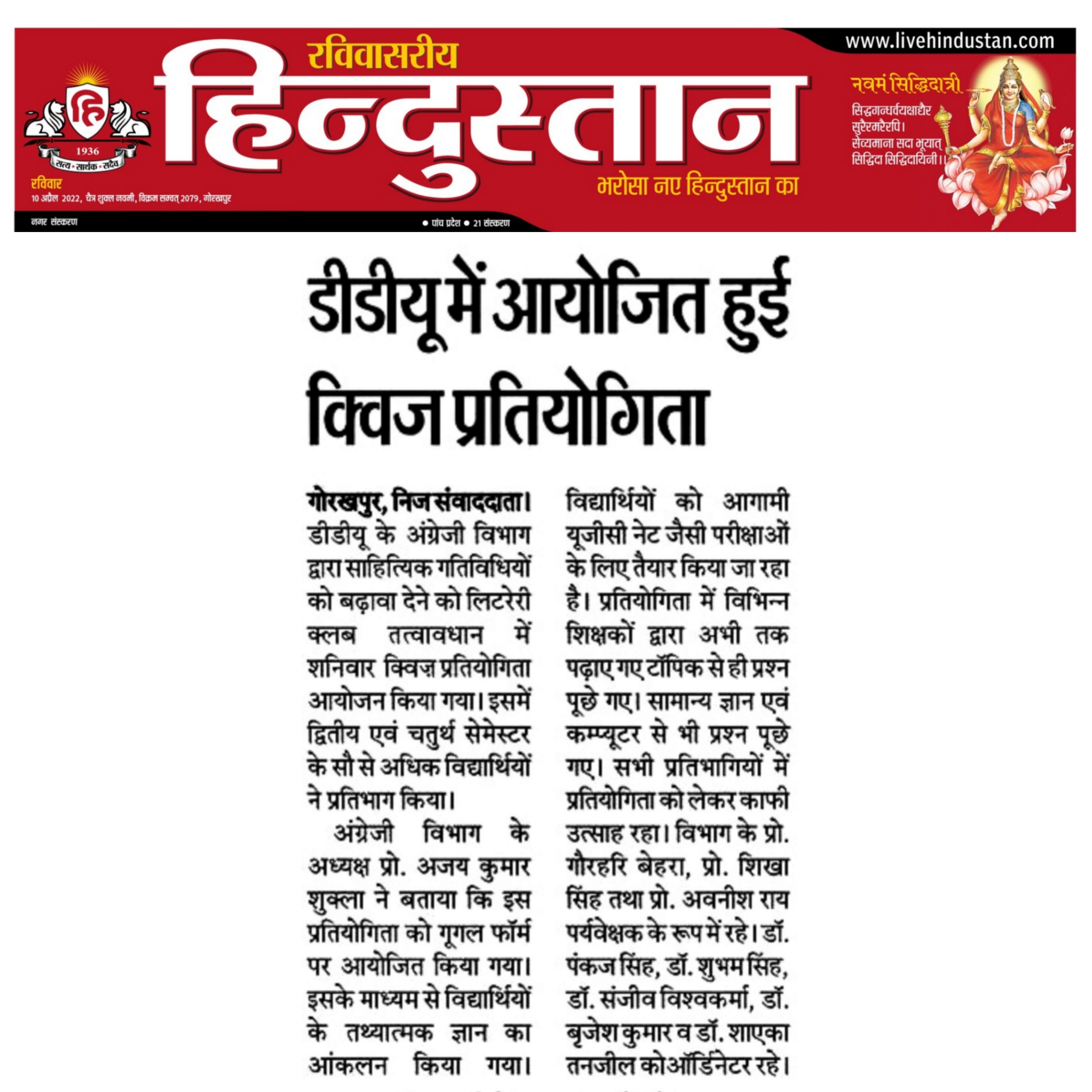 Department of Hindi, Modern Indian Languages & Journalism